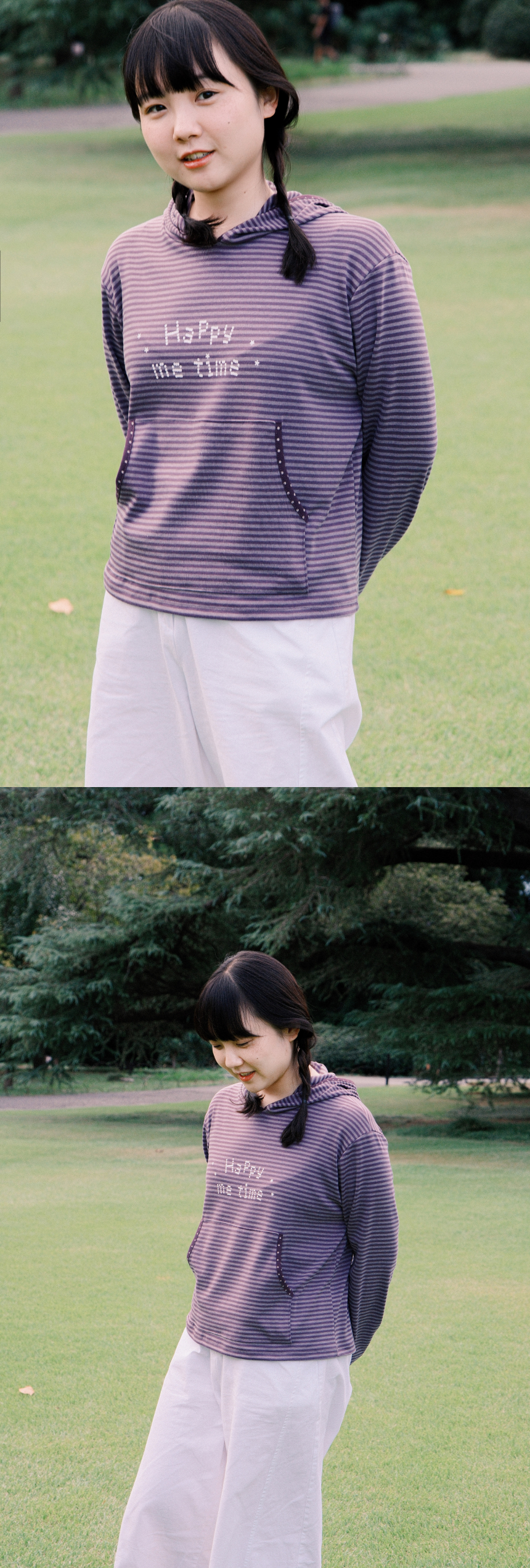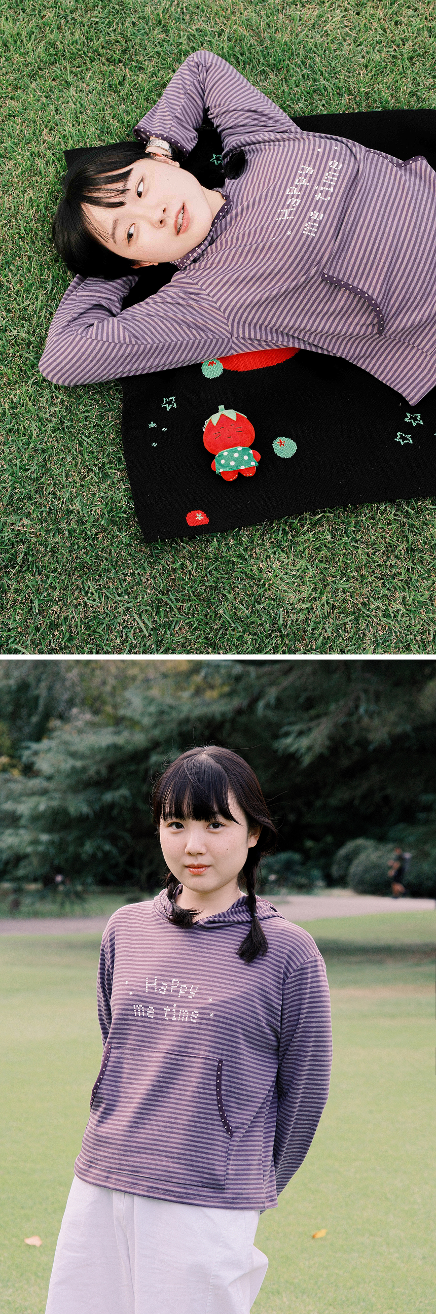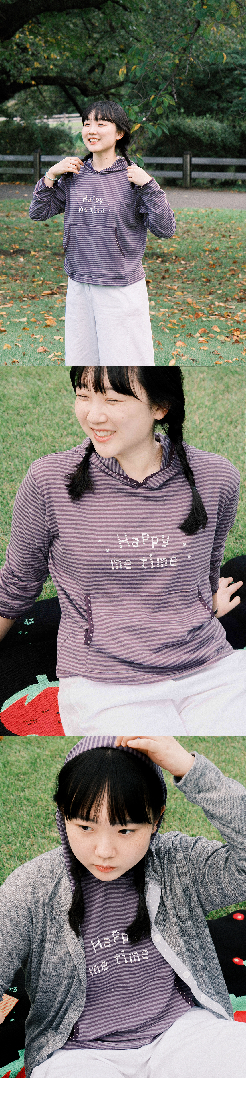 해피미타임 스트라이프 후드