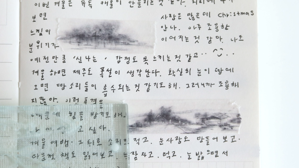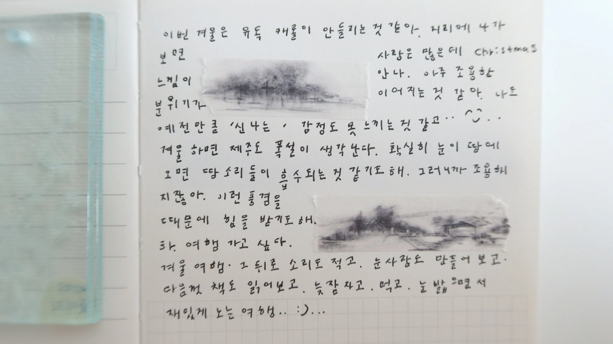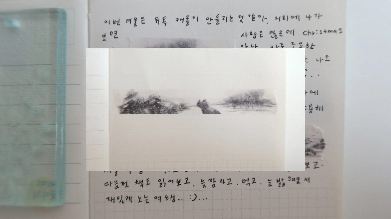 연필로 그린 겨울 풍경.